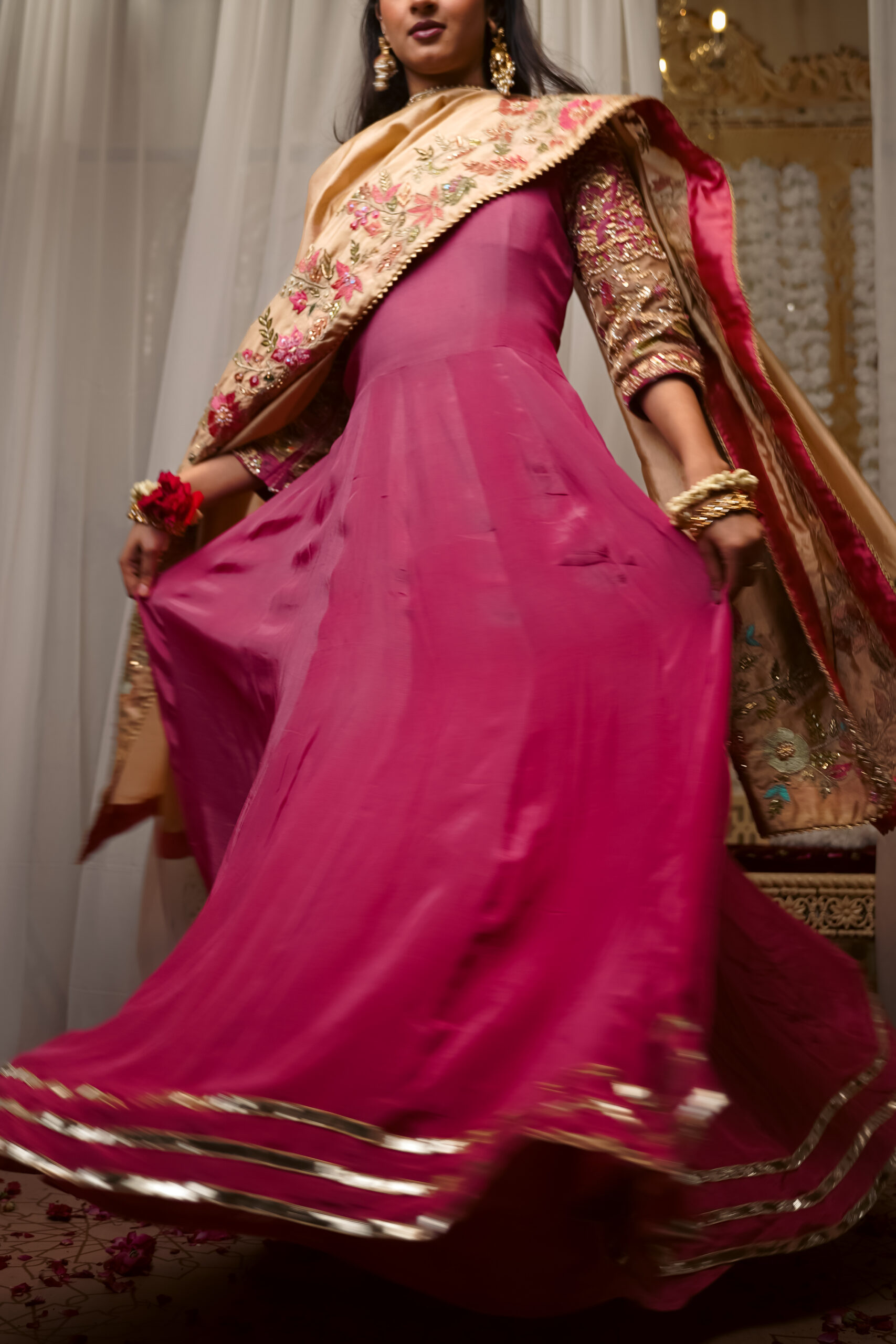 Neckline & sleeves adorned with intricate handwork and delicate stone embellishments.